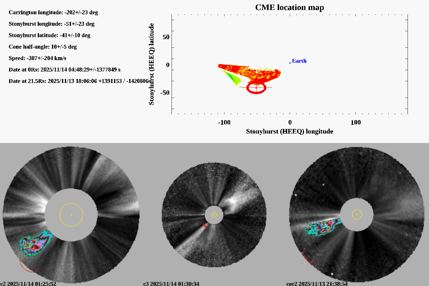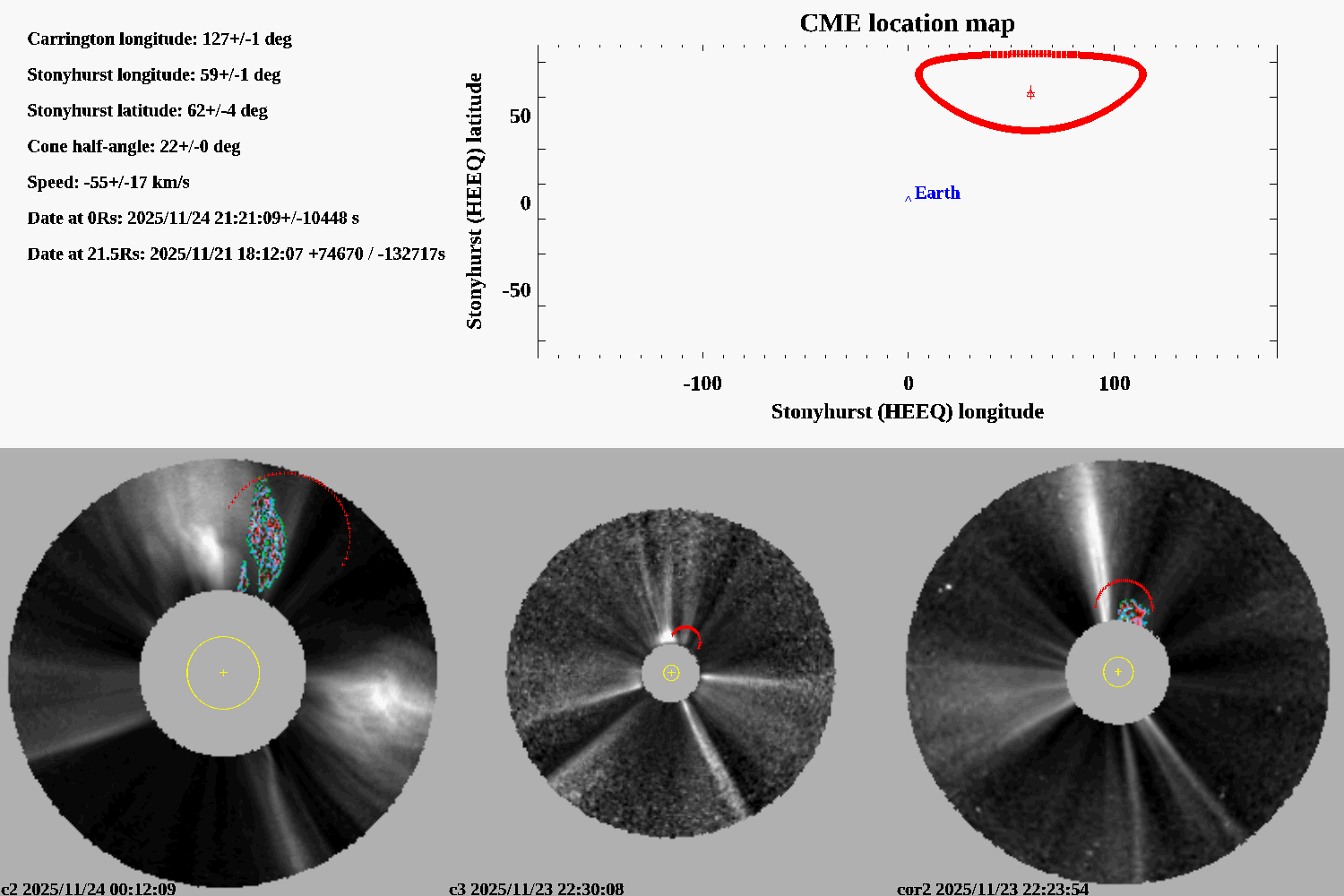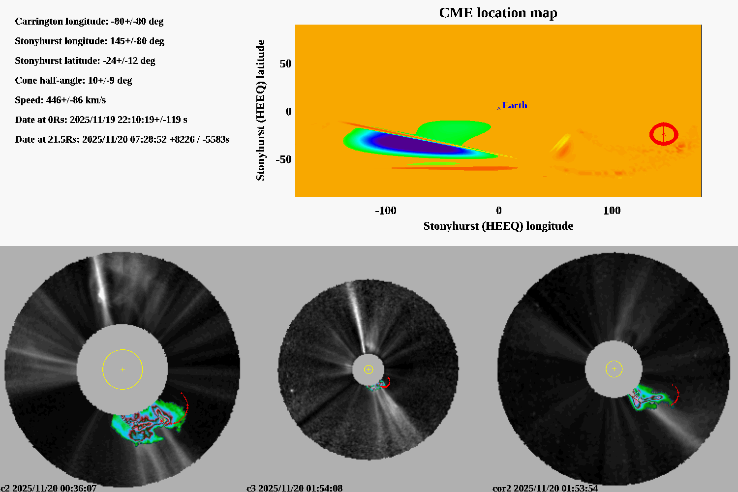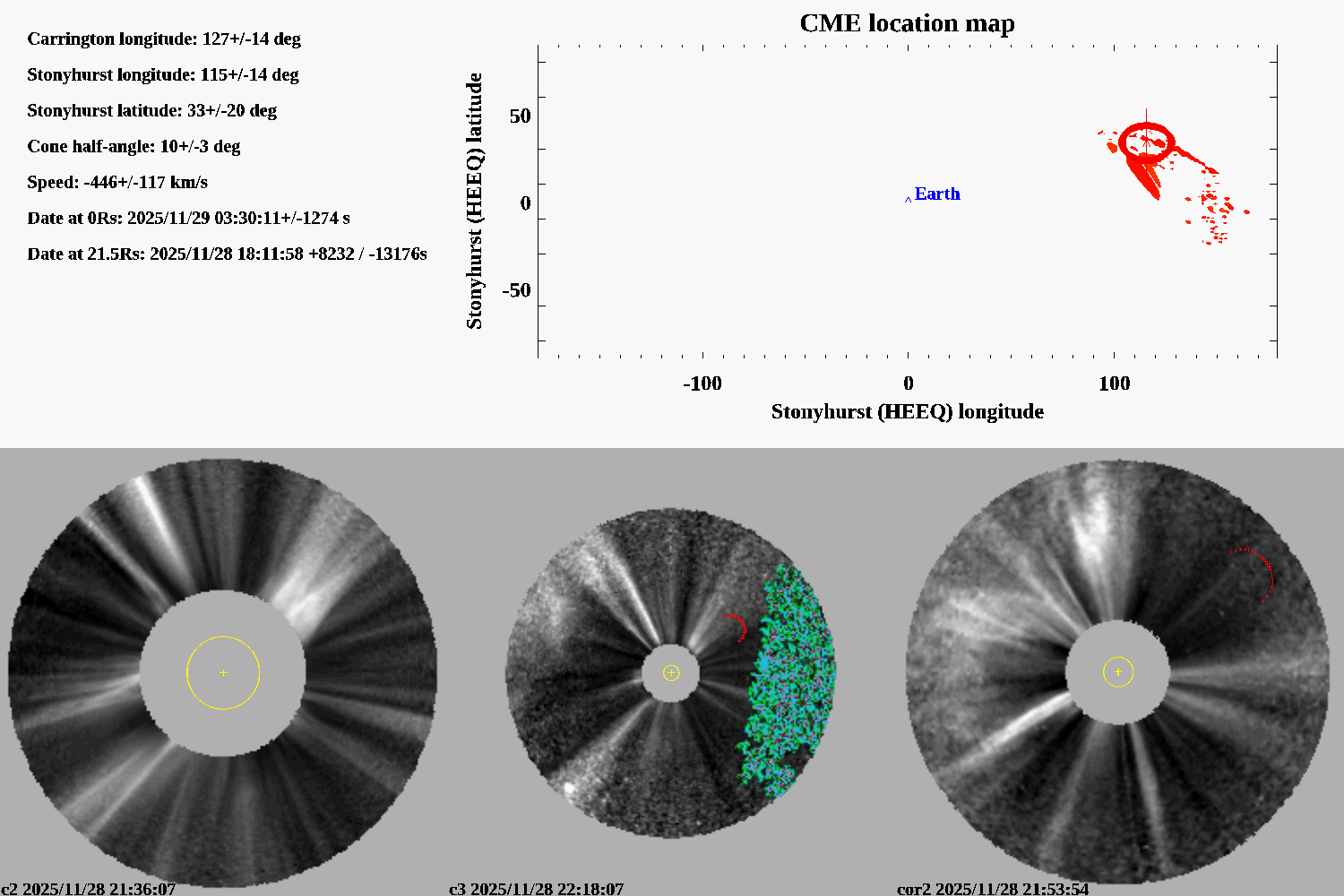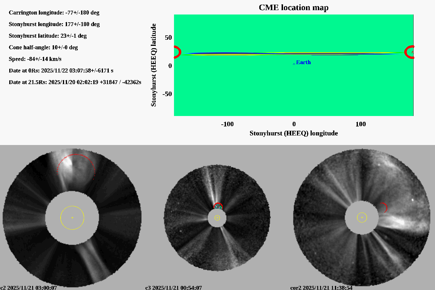 degree stonyhurst (longitude relative to Earth meridian)